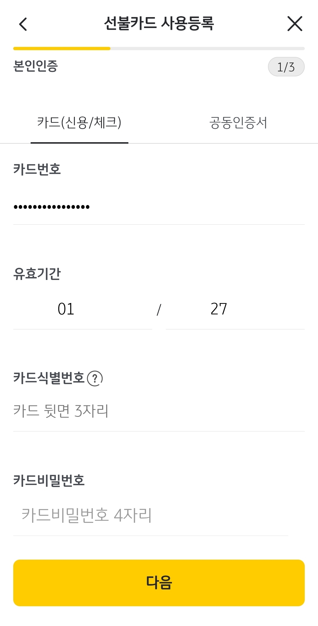 - 카드 번호와 CVC 입력