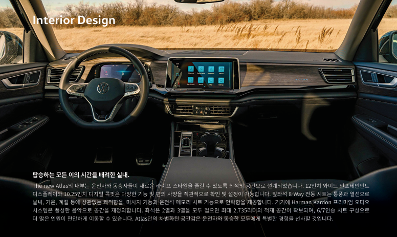 폭스바겐 아틀라스는 넓고 실용적인 실내 공간, 뛰어난 좌석 활용성, 첨단 기술 탑재로 인해 단순한 패밀리 SUV를 넘어 고급 SUV에 가까운 만족감을 제공합니다. 특히 2열·3열 모두 성인 탑승이 가능할 만큼 넉넉하며, 폴딩 시에는 소형 밴 못지않은 적재력을 자랑합니다.