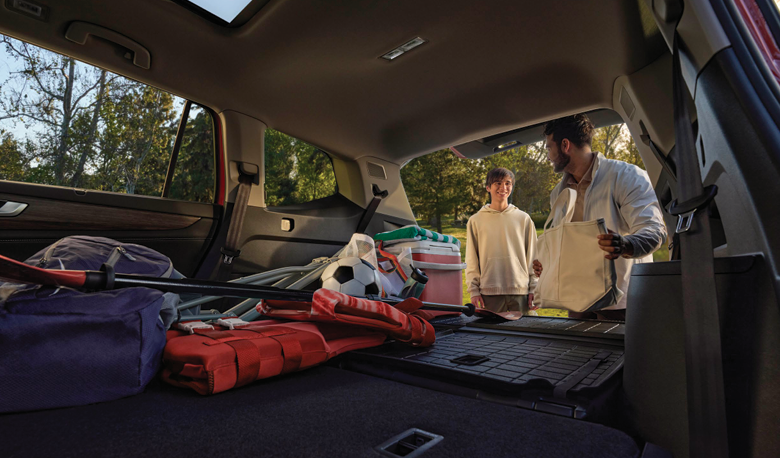 - 3열을 접을 경우 약 55.5 입방피트(ft³)의 적재 공간이 생기며, 2열과 3열을 모두 접으면 최대 96.8 ft³에 달하는 광활한 적재 공간을 확보할 수 있습니다.